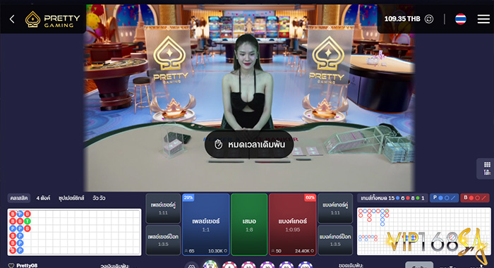 Pretty Gaming เป็นค่ายเกมที่เน้นการให้บริการคาสิโนสดแบบเรียลไทม์ มีดีลเลอร์สาวสวยสไตล์พริตตี้มาให้บริการ เกมที่โดดเด่น ได้แก่ บาคาร่า เสือมังกร รูเล็ต และไฮโล ค่ายนี้มีระบบที่ทันสมัย รองรับการเล่นผ่านมือถือ และมีอัตราการจ่ายที่คุ้มค่า นอกจากนี้ยังมีรูปแบบเกมพิเศษ เช่น บาคาร่าประกันภัย ที่ช่วยลดความเสี่ยงในการเดิมพัน และรองรับการเล่นหลายโต๊ะพร้อมกัน